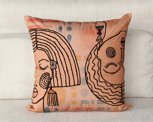Terracotta And Multi Abstract Face Pillow