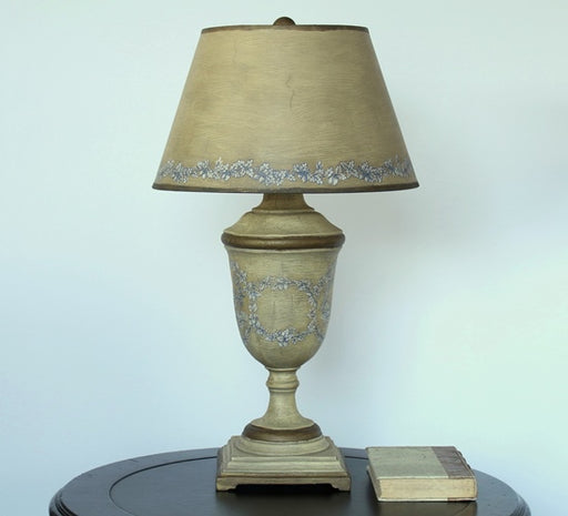 Blonde Urn Table Lamp with Embroidered Silk Shade