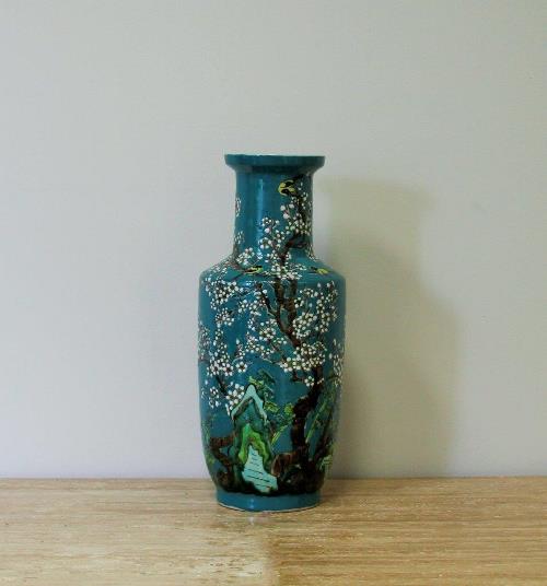 Chinese Cherry Blossom Turquoise Porcelain Vase