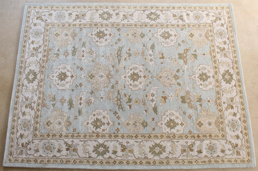 9' x 12' Traditional Indian Sky Blue and Antique White Hand-tufted Wool Rug
