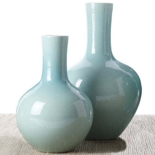 Set of 2 Aquamarine Collar Vases - Cleared Décor
