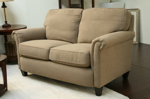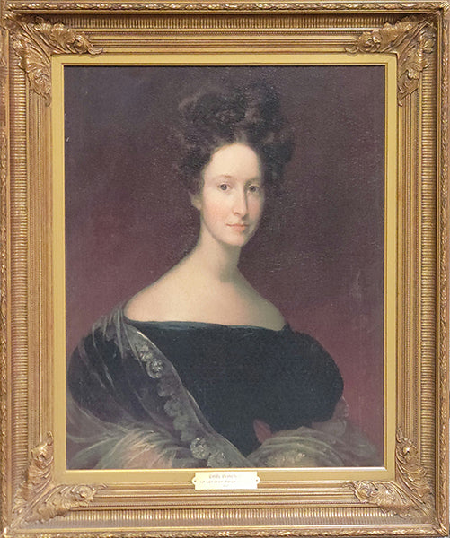 Curved Dark Wood Club Chair with Oyster Upholstery