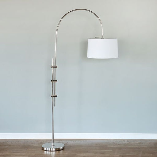 Polished Nickel Arc Floor Lamp With Fabric Shade