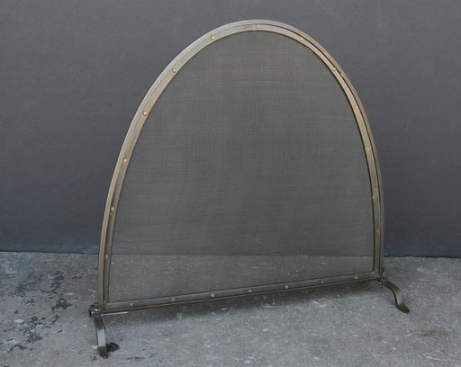 Curved Iron Mesh Riveted Brass Fireplace Screen