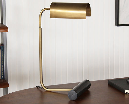 Weathered Brass And Black Marble Desk Lamp