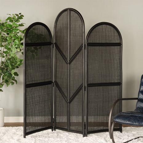 Ebony Rattan 3 Panel Screen - Cleared