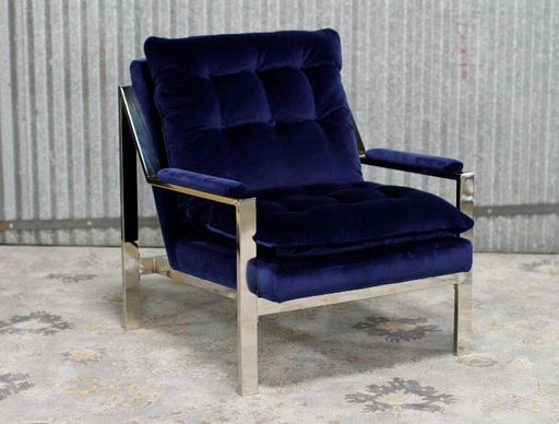Nickel Plated Arm Chair With Navy Velvet Cushions