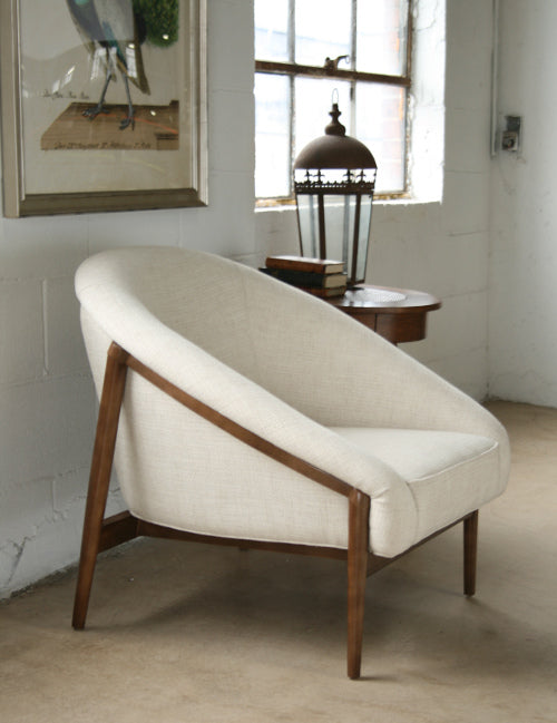 Oatmeal Woven Barrel Chair with Walnut Legs
