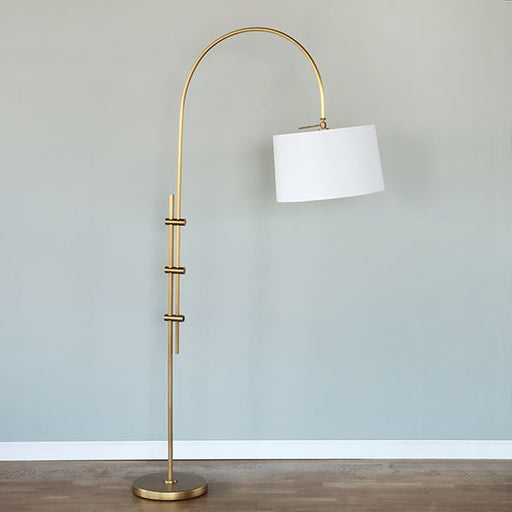 Natural Brass Arc Floor Lamp with Fabric Shade