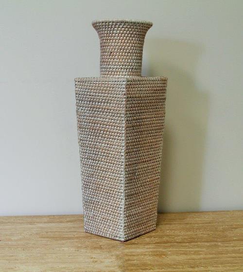 Whitewashed Woven Reed Square Vase