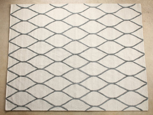 8' x 10' Cream and Light Gray Hand-tufted Wool Grid Rug