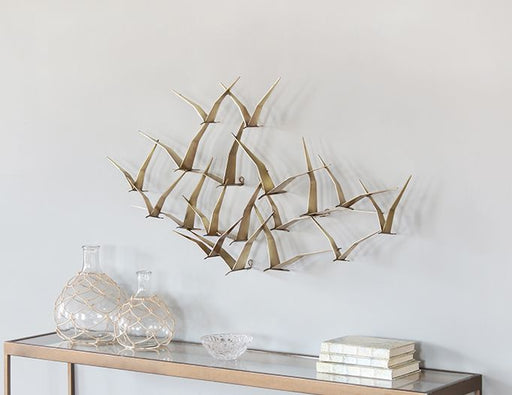 Abstract Brass Seagulls Wall Sculpture - Cleared Décor