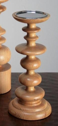 Small Sculpted Blonde Wood Pillar Candle Holder