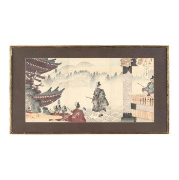 Antique Japanese Woodblock Shrine Scene 19th c. 34.75W x 19.5H