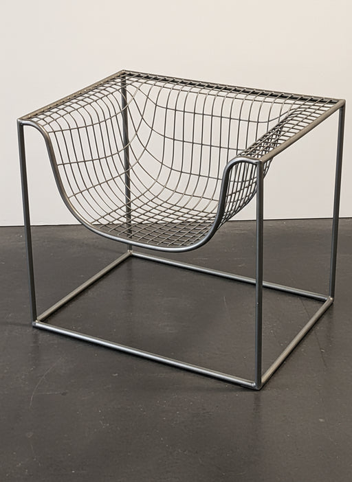Nickel Plated Arm Chair With Navy Velvet Cushions