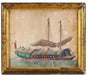 Antique Chinese Pith Painting 19th c. Trade Ship 9.5W x 8H