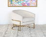 Barrel Back Cream Boucle Club Chair With Satin Brass